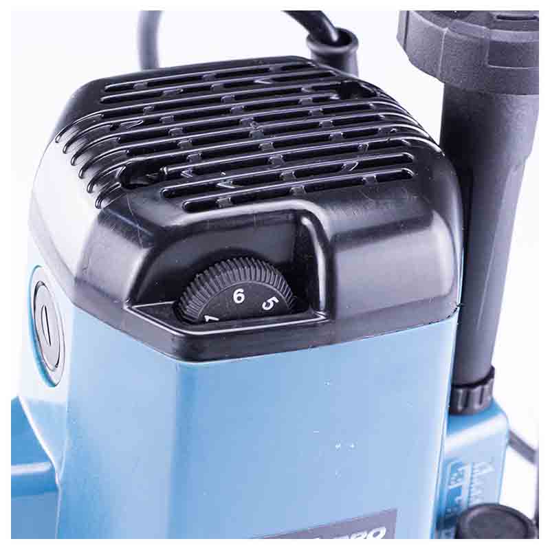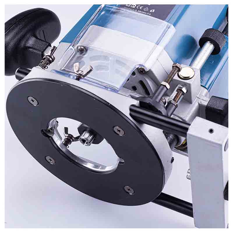 Ρούτερ με μηχανισμό κλειδώματος που εξυπηρετεί στη γρήγορη και εύκολη ρύθμιση βάθους και αλλαγή βάσης. Οι λαστιχένιες λαβές και ο σχεδιασμός χαμηλού κέντρου βάρους παρέχουν την καλύτερη άνεση, ισορροπία και μεγαλύτερο έλεγχο από το χρήστη. Διαθέτει ρυθμιζόμενους οδηγούς για ακριβής κοπές.