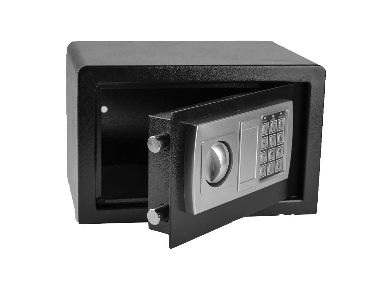 Χρηματοκιβώτιο ασφαλείας με ηλεκτρονική κλειδαριά και κλειδί. Μπορεί να τοποθετηθεί σε τοίχο, ντουλάπα ή στο πάτωμα.